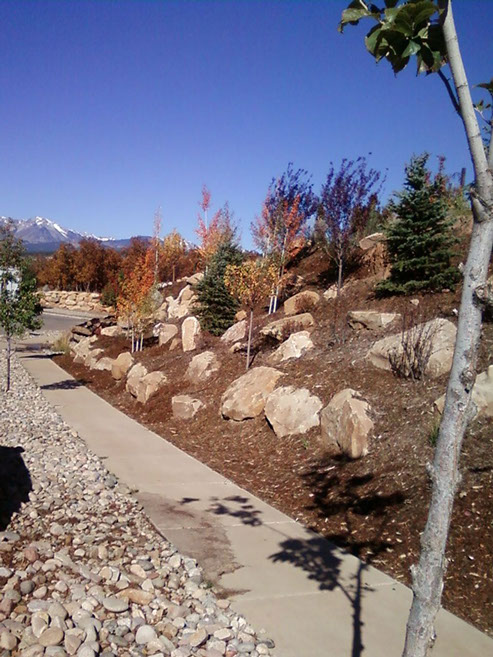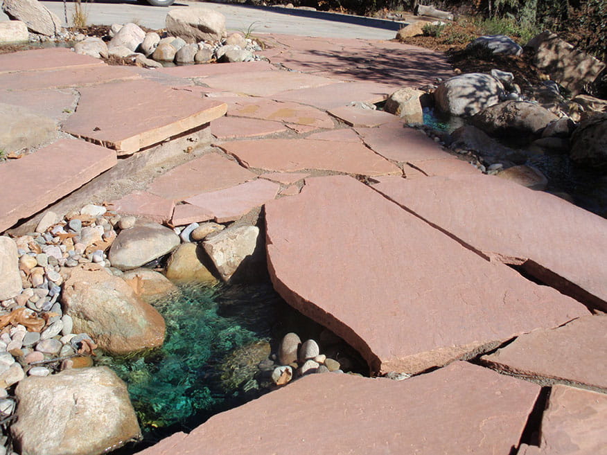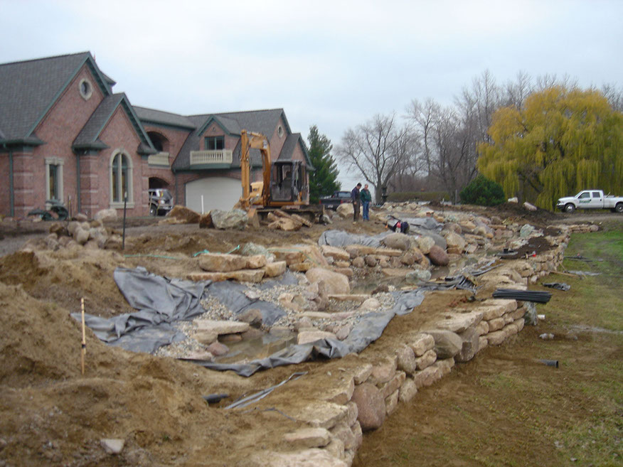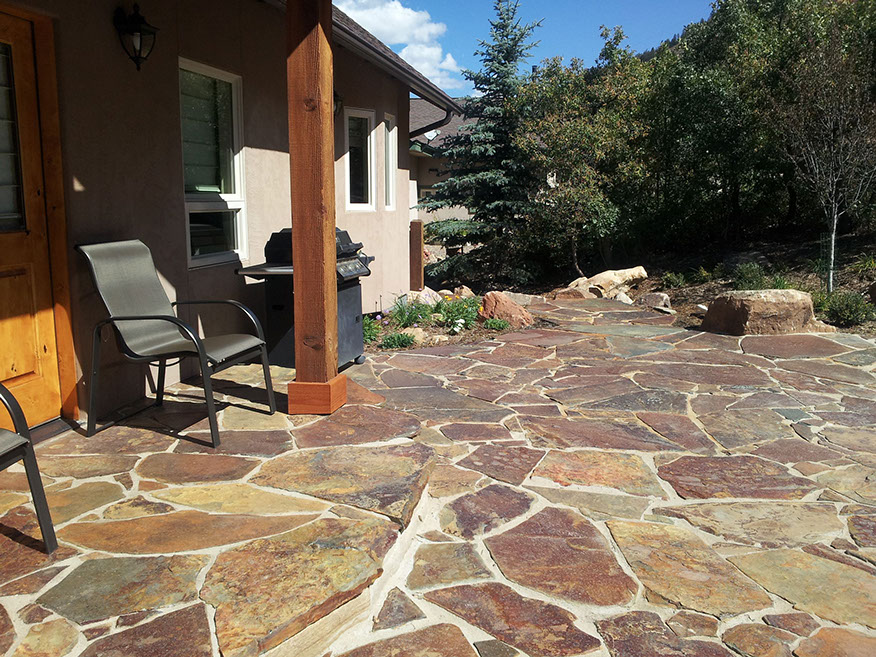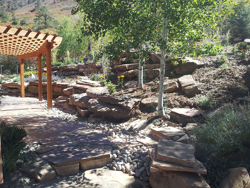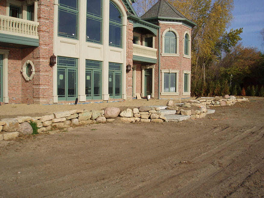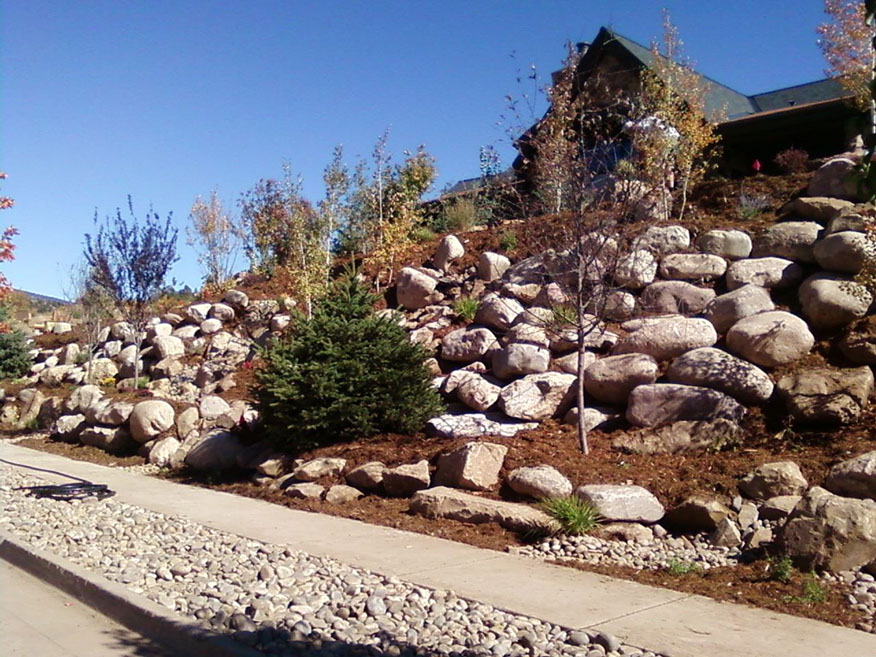 We build a variety of retaining walls using slab rock, limestone, montana grizzly, blue flagstone, slate, boulders or interlocking systems.