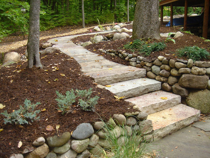 We offer many different types of stone work. From a pathway of stepping stones to a stone staircase, we do it all. We also build rock gardens, combining rock or boulder outcroppings with perennials to establish a garden of dreams.