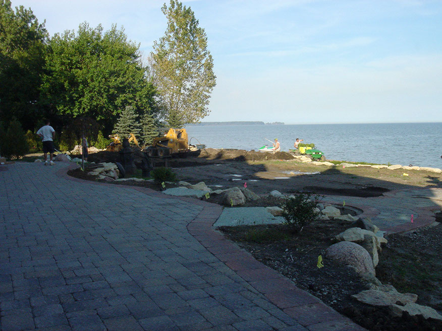 All colors, shapes and possibilities are available when we create a walkway; patio or driveway. Straight walls, variety of curves and steps all adapt to every landscape plan.