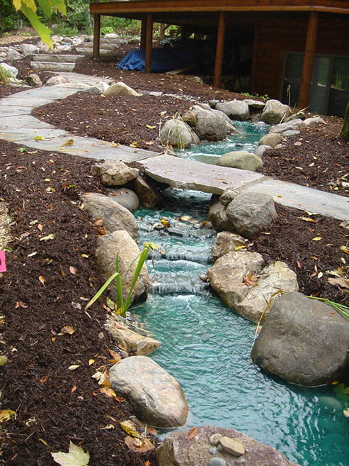 At Advance Designs we are ready, willing and able to construct the water feature of your dreams. From a miniature reflection pond at the front entrance of your house, to an elaborate multiple of interconnected waterfalls, ponds and streams, no job is too big or too small. Let us help you make your dream of a water filled paradise a reality. Whether your job is a new construction or a renovation of an existing water feature, we guarantee that it will bring years of enjoyment.